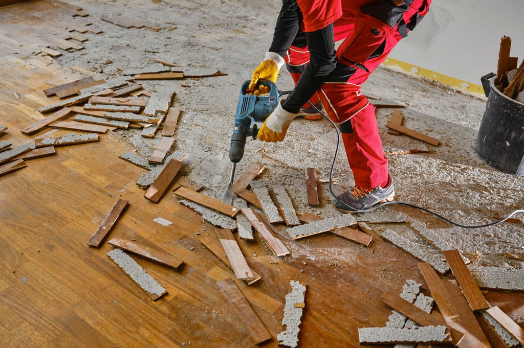 Перед началом ремонта или перепланировки необходимо провести демонтажные работы: убрать ненужные перегородки, удалить старые покрытия с потолка, пола и стен, а также снять бетонную стяжку.