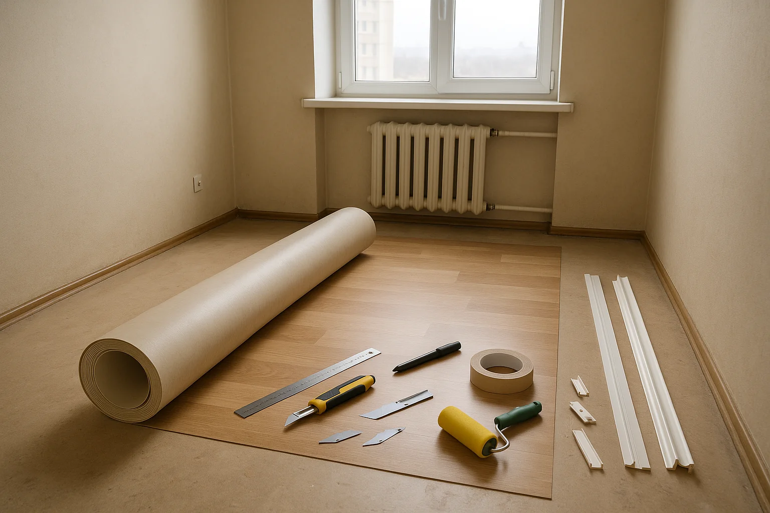 | Стоимость укладки линолеума | | |